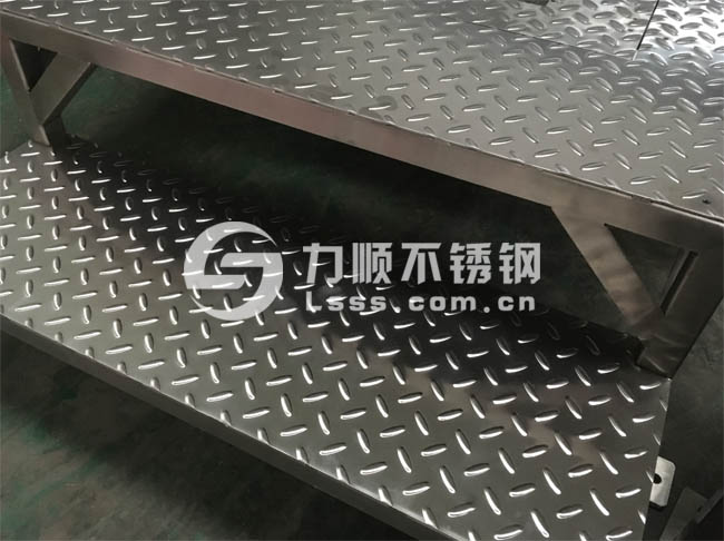 304不锈钢防滑平台,由不锈钢花纹板、不锈钢管加工制成,表面使用防滑效果突出的扁豆花纹板。3mm厚度的不锈钢扁豆花纹板,内衬矩形管、角钢,形成结构稳定的工作面,是成套设备的重要组成部分。不锈钢花纹板被广泛用作地面(包括平台、走廊、楼梯等)防滑材料,采购不锈钢花纹板、不锈钢防滑平台,找无锡力顺不锈钢。